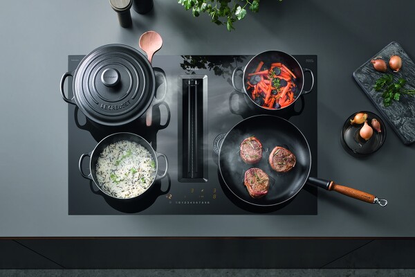 Das neue Miele TwoInOne verlegt den Dunstabzug nach unten. Ihr Wohnbereich bleibt angenehm geruchsneutral, während Sie Ihrer Leidenschaft für das Kochen nachgehen.
