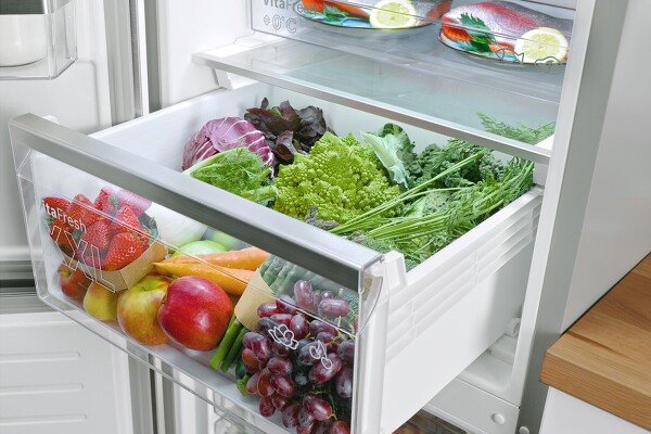 Das geräumige VitaFresh XXL System bietet bei einer Temperatur von 0° ideale Lagerbedingungen, um Fleisch und Fisch kühl sowie Gemüse und Obst knackig zu halten.